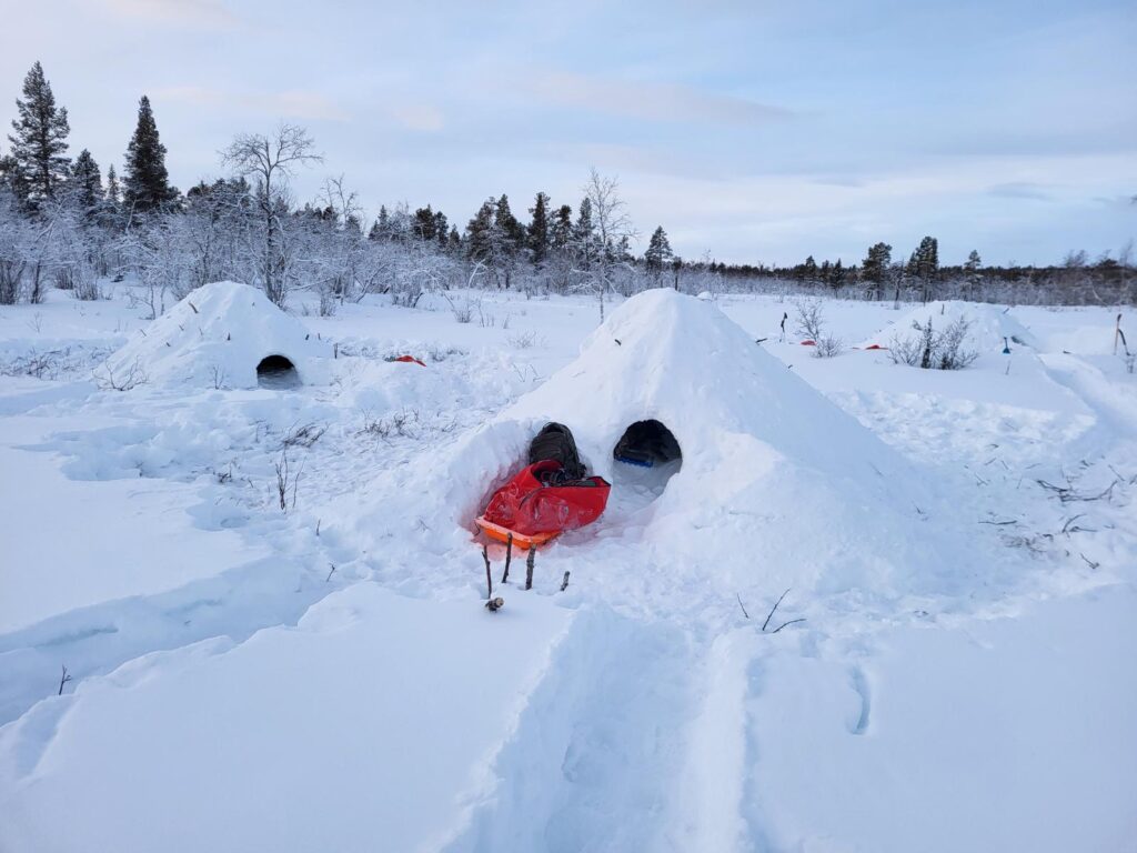 „Wenn es stürmisch wird, ist ein selbstgebautes Iglu der sicherste Ort der Welt. Es ist dort drin unfassbar leise und stabil. Allein durch die eigene Körperwärme steigt die Temperatur auf -4 °C, während draußen -30 °C herrschen. Dieser Kontrast ist Wahnsinn. Ansonsten nutzen wir Militärzelte mit Ofen und Feuerwache, aber das Eingraben im Schnee ist oft die ehrlichste und sicherste Verbindung zur Natur.“